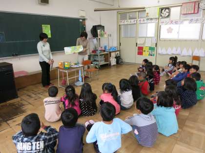 先週7日(木)に、おはなしサークル「旭おはなしたい・すみれ」の方々に「おはなし会」をしていただきました。