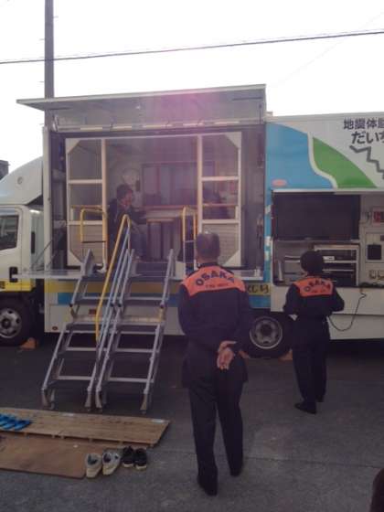 消防署の方にも来ていただき、煙体験や起震車を使っての地震体験など、さまざまな訓練を地域のみなさんが行っておられました。