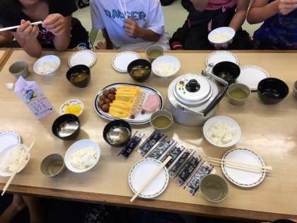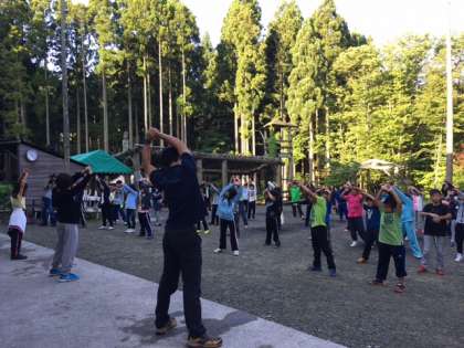 いつもより起床時間が早いためか、まだ少し寝ぼけている様子の子ども達でしたが、元気に体操したあと、朝ごはんをしっかり食べて2日目の活動がスタートしました。