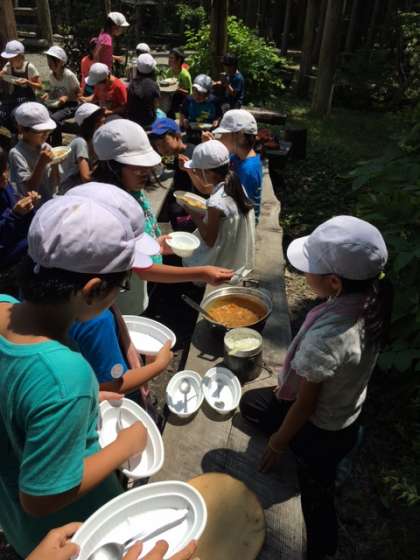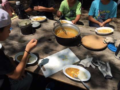 午前中の活動も終わり、いよいよ飯ごう炊さんがスタートしました。役割を分担し、カレーをつくります。どんなカレーができるか楽しみです。