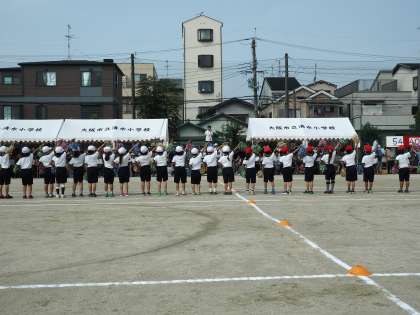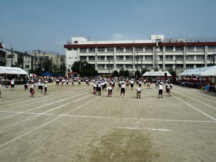 1年生の団体演技「タイムマシンにのって〜トライ・エブリシング〜」の様子です。