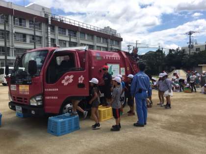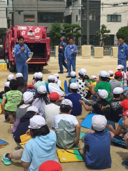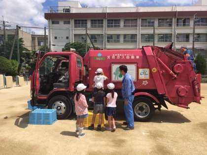 6月13日(火)の2・3時間目、大阪市環境局城北事業センターのみなさんに来ていただき、4年生がパッカー車にごみを入れる体験をしました。そのあとは視聴覚室にて、ごみについてのお話をしていただきました。さらに、23日は東淀焼却工場に社会見学に行ってきます。