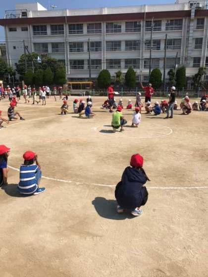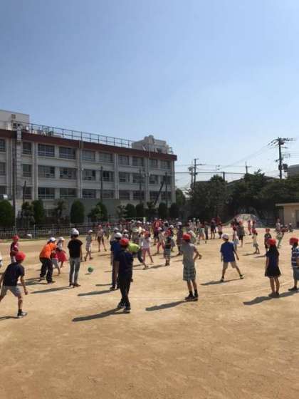 6月15日(木)の1時間目に、たてわり班(1年生から6年生が異学年交流をつくっての活動)でころがしドッジボールをしました。6年生が1年生にボールのころがし方を優しく教えていました。子どもたちは楽しそうにボールをころがしていました。