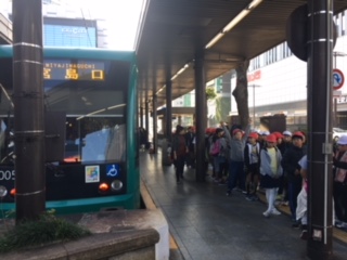 天気もよく最高の朝を迎えました。朝食もしっかり食べてみんな元気です。お世話になった世羅別館の方々にお礼を言って2日目の行事に出発しました。今から宮島に向かいます。