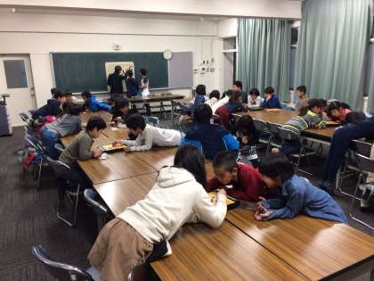 今日は天候が雨だということもあって教室はいっぱい大賑わいです。