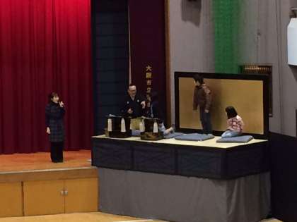 11月29日(水)の三、四時間目にNPO法人人形浄瑠璃文楽座の方に来ていただき、「文楽」について教えてもらいました。代表の子どもたち何人かが、三味線をひいたり、人形を操ったり、全員で大夫の声出しをしたりすることをさせてもらいました。自分たちの住む国の伝統文化についての貴重な体験ができました。
