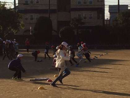 木曜日は、児童集会の日です。今日は新聞を手で持たずに走って運ぶリレーをしました。