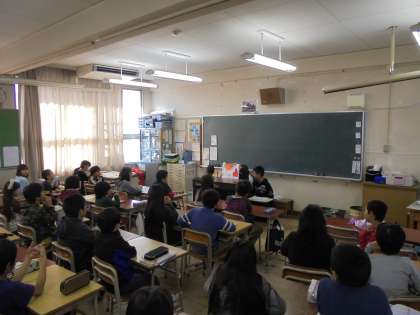 どのグループも画用紙などにまとめたことを丁寧にわかりやすく説明することができました。下級生のお友だちも真剣な表情で6年生の報告に聞き入っていました。さすが6年生。「平和」についてこれまで学んできたことがしっかりと報告に表れていました。