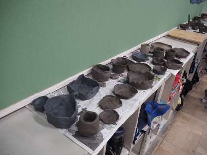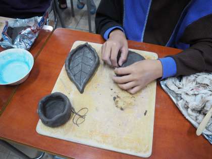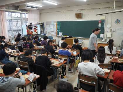 6年生の子どもたちが、作品展に向けて陶芸制作に取り組んでいます。