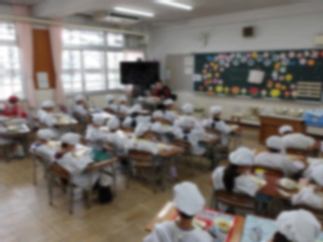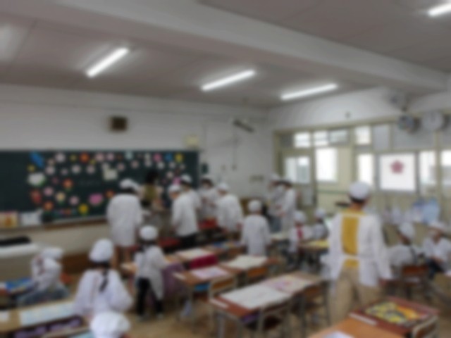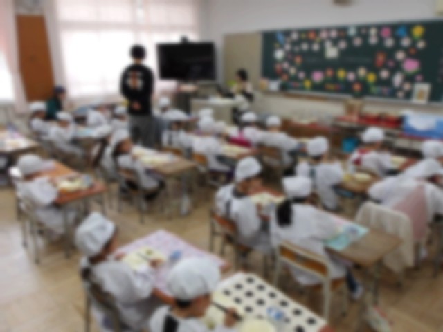 まだ用意や配膳、食べることにも時間がかかる1年生のために、6年生が給食の時間にお手伝いに来てくれています。
