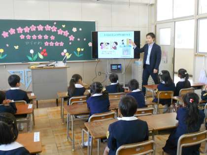 1年生は学校生活の始まりです。トイレの使い方を学習していました。