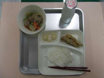 メニューは、いわしてんぷら・鶏肉とさといもの煮もの・みたらしだんご