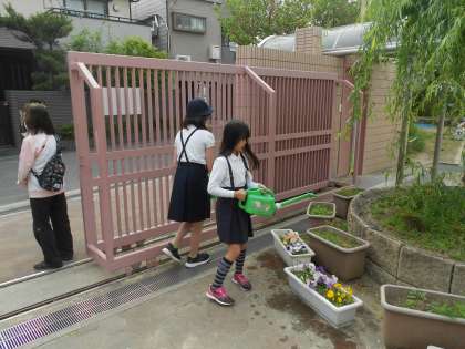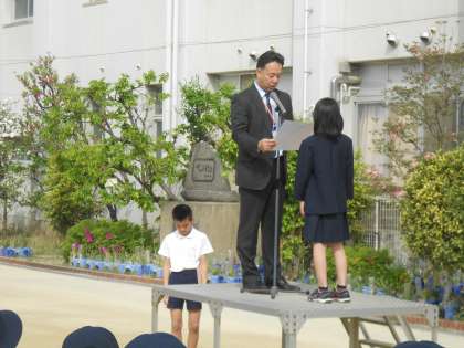 4月22日(月) 10連休前の一週間が始まりました。子どもたちは元気にあいさつして登校できていました。委員会活動で、登校した後、花に水やりをしてくれていました。