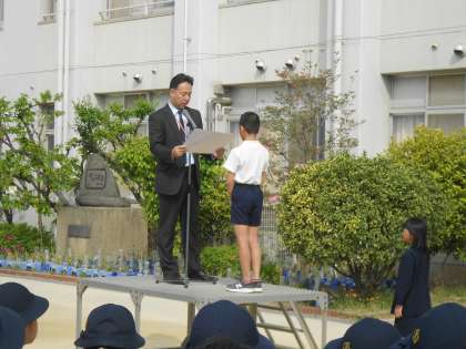 児童朝会では、日本拳法の全国大会で準優勝・3位の賞状をもらった児童の紹介をさせてもらいました。子どもたちのあたたかい拍手がうれしかったです。