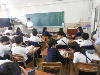 6年生は、社会科の学習と国語の学習に取り組んでいました。社会科では歴史を学習しています。「米作りはなぜ広がったのか」についてグループで話し合って発表していました。国語は随筆の学習でした。自分の思いを文章で表現するための題材を話し合っていました。