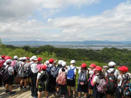 広場でみんなで遊び、下山途中に大阪北部、京都方面を見渡すことができる展望台がありました。ちょうど晴れて素晴らしい景色を見ることができました!