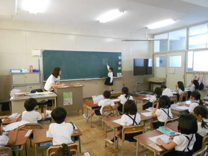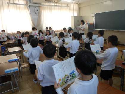 1年生の国語の学習の様子です。子どもたちが向き合って、呼び掛けながら音読したり、ひらがなの「と」の字の練習をしたりしました。