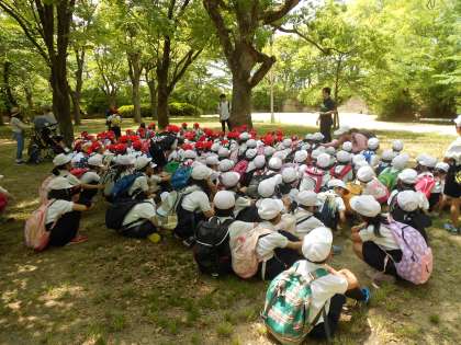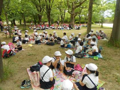西の丸庭園に到着したあと、子どもたちが楽しみにしていたお弁当を食べました。子どもたちは、お友達と一緒に楽しく食べることができていました。