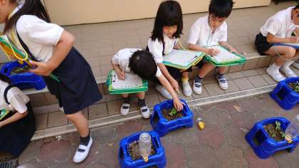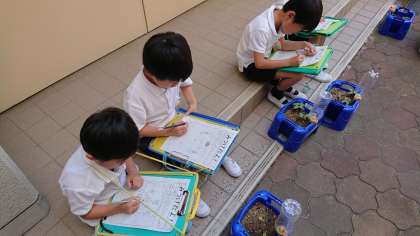 今日はあさがおの観察を行いました。子どもたちはあさがおの双葉の様子を細かく絵でかくことができました。