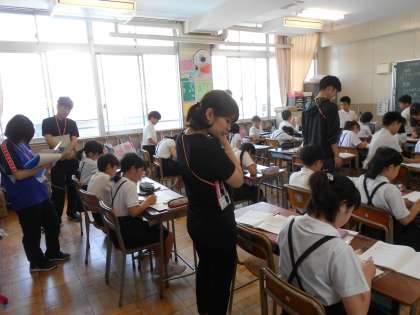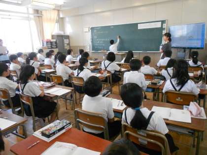 2時間目、5年生は算数の公開授業に取り組んでいました。整数×少数の計算の仕方を考えました。子どもたちは自分なりの解決の仕方を考えることができていました。