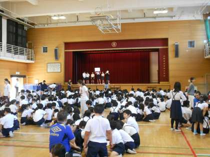 5月23日(木) 今日の児童集会は子どもたちに人気のお菓子の名前でビンゴをしていました。「ぷっちょ」「チョコモナカジャンボ」など喜んで書いていました。たくさんの班がビンゴすることができていました。