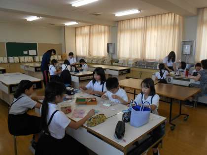 料理・手芸クラブでは、ティッシュケースを作っていました。6年生が4・5年生に優しく裁縫を教えてくれていました。