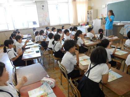 2年生は音楽の学習に取り組んでいました。「トルコ行進曲」のリズムを楽しく手拍子であらわしていました。