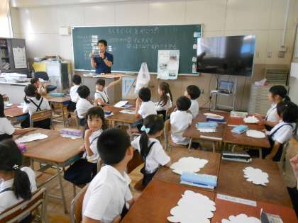 1年生は同じ幼稚園や保育所の子どもたちがグループを作って、学校探検の様子をまとめています。小学校のようすを幼稚園や保育所の先生や子どもたちに伝えます。