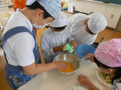 昨日に引き続き、6年1組が調理実習を行いました。スクランブルエッグも手際よく作ることができていました。