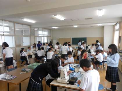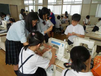 6年生の家庭科の学習で子どもたちはエプロンを作っています。今日は地域にあります東洋学園のファッション科の生徒さんが子どもたちに指導に来ていただきました。本校と東洋学園の交流活動として、6年生と5年生の家庭科の時間に来ていただいています。大変優しく教えてもらっていました。今日から5・6年生の各学級に来ていただきます。よろしくお願いいたします。