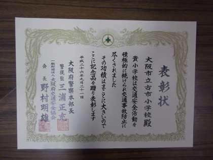 交通安全優良学校表彰 受賞