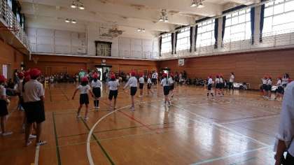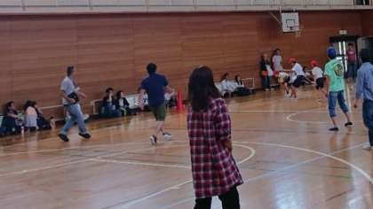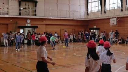 日曜参観、3時限目に学年懇親会で「ドッジボール」を行いました。子どもVS保護者の対戦が実現しました。