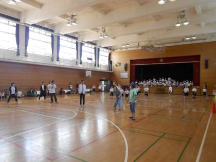 5年生は講堂で「ドッジボール大会」、6年生は音楽室で「腕相撲大会」を行いました。ドッジボールはさすが5年生、迫力がありました。腕相撲大会の大人・子どもの決勝戦は大盛り上がりでした。