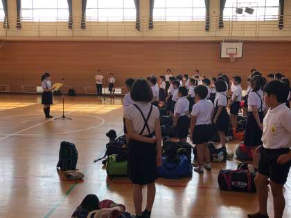 おはようございます。六年生は淡輪にあります、大阪府立青少年海洋センターに、二泊三日の海洋トライアルに予定通り出発しました。