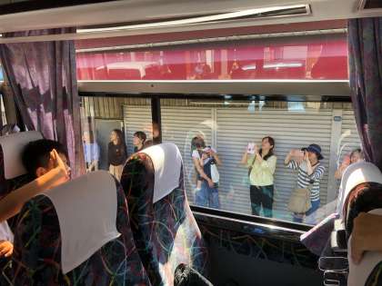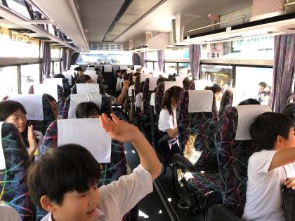 バスに乗り込み、まずは大阪ガス科学館に向かいます。午前中はガス科学館の見学です。