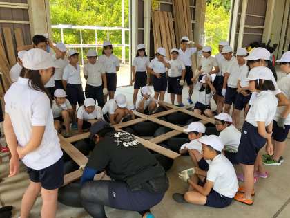 指導員さんの説明をしっかり聞いておかないと組み立てができません。みんな一生懸命聞いていました。