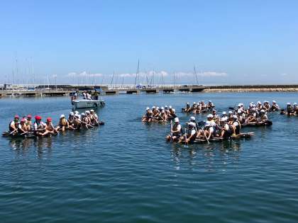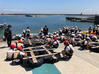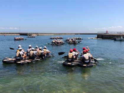 パドルを使って海に漕ぎ出しました。みんなの気持ちを合わせることが大切です!
