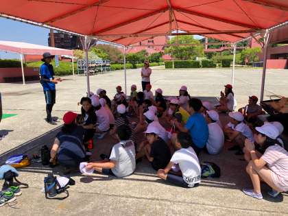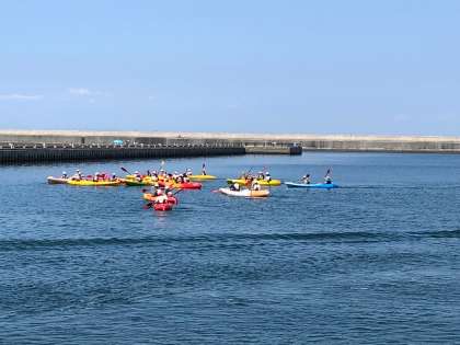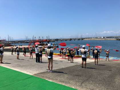 昼食の後は2人乗りカヌーでした。指導員さんの説明をしっかり聞き、子どもたちはペアの2人で大阪湾に向かって漕ぎ出しました!
