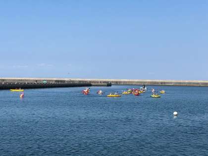 前半は二組のみんながカヌー体験でした。かなり沖まで出て行くことができました。