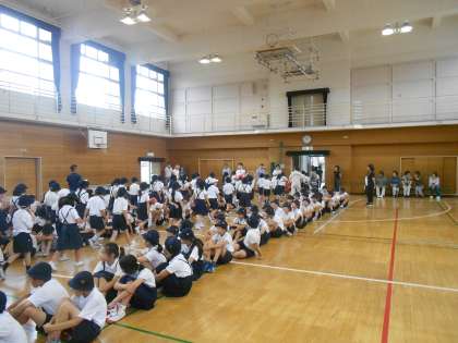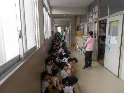 講堂に避難した後、津波を想定し、校舎の上階に避難しました。地域の皆様にも一緒に避難していただきました。