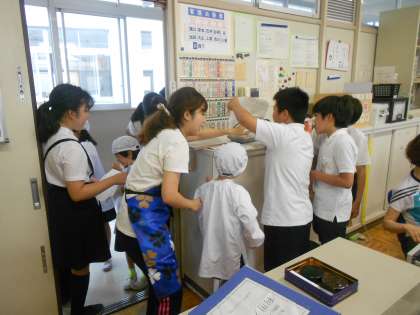 給食時間の放送で、子どもたちは「古市ランランランド」のお店の紹介をしています。アナウンスの仕方がとても上手なことに驚きました!