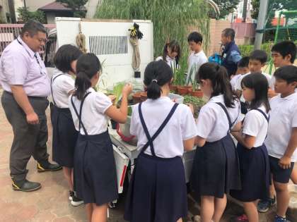 子どもたちは自分のしょうぶを決めて大切に植えていました。