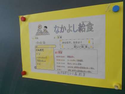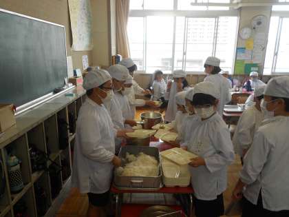 給食の時間は「なかよし給食」を行いました。縦割り班で給食を食べます。高学年が給食当番をし、異学年の子どもたちが交流するいい機会です。高学年は大変立派でした!