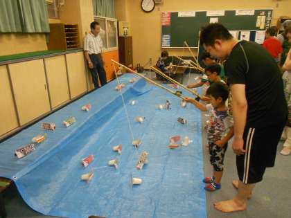スマートボールや魚釣りゲームは小さな子どもたちも楽しむことができました。