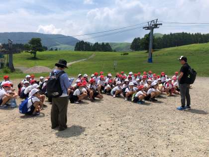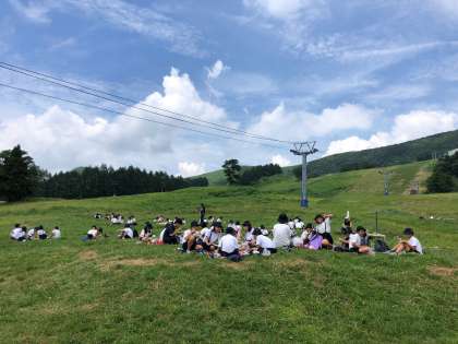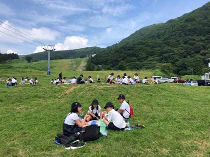 宿舎の前の広場でお弁当をいただきました。きれいな景色を見て食べることができました。