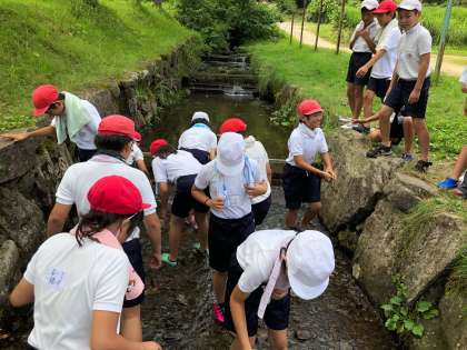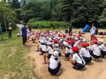 今日の午後は魚つかみを行いました。宿舎近くの小川でアマゴを捕まえます。水が冷たくて驚いていました。なかなか魚を捕まえるのは難しく、悪戦苦闘している子どももたくさんいました。