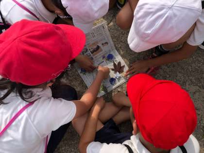 草花を採取し、押し花にして栞を作ります。うまくラミネートできれかな?