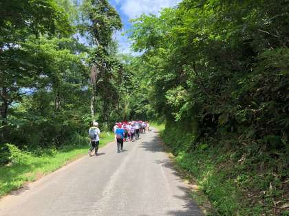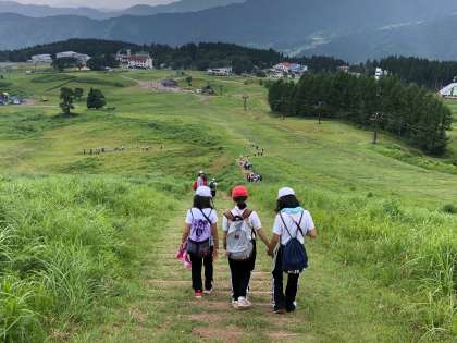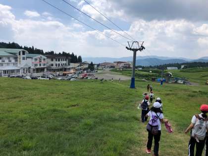 山道から林道に入り、最後は宿舎前のゲレンデを下ってきました。