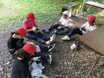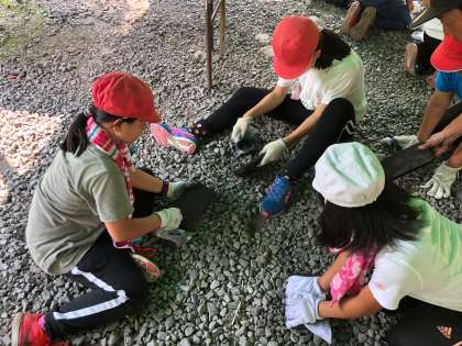 杉の木を焼いた板をしっかり擦り、すすを落とします。この作業が大変です。