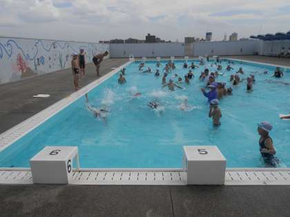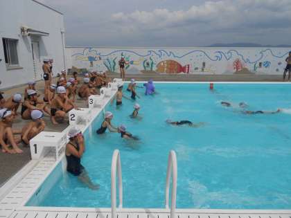4年生の様子です。リレーをして大変盛り上がっていました。自由練習の時間に担任の先生と25mの勝負をして子どもが見事に勝ちました。